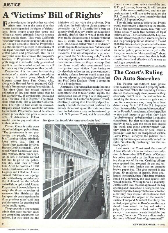 Press, Aric, and Joe Contreras. “A ‘Victims’ Bill of Rights’.” Newsweek, June 14, 1982, 64.