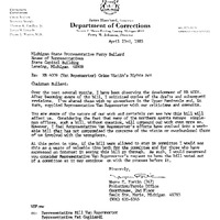 - Fortin, Wayne E., to (Winston) Perry Bullard. “HB 4009 (Van Regenmorter) Crime Victim’s Rights Act.” April 23, 1985. HB4009 (Van Reg – Victims Rights) Internal, Box 37, Perry Bullard Papers, Bentley Historical Library, University of Michigan.