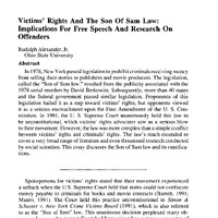 - Alexander, Rudolph. “Victims' Rights and the Son of Sam Law: Implications for Free Speech and Research on Offenders.” Criminal Justice Policy Review 6, no. 4 (1992): 275–90. Thousand Oaks, CA: SAGE Publications.