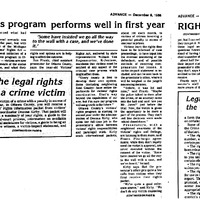- McDiarmid, Hugh C., Jr. “Victims’ Rights Program Performs Well in First Year.” December 9, 1986. Van Regenmorter Office Papers, Box 5, Folder 3, Archives of Michigan, Lansing, MI.