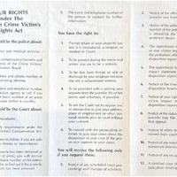 - "Your Rights Under the Michigan Crime Victim’s Rights Act." 1988. Box 5, Folder 1. Van Regenmorter Office Papers. Michigan Archives, Lansing, MI.