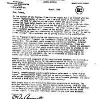 - Van Regenmorter, William. [Letter for Support on Proposal B]. August 1988. Van Regenmorter Office Papers, Box 7, Folder 3, Archives of Michigan, Lansing, MI.