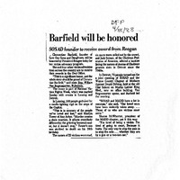 - Detroit Free Press. “Barfield will be honored SOSAD founder to receive award from Reagan.” April 18, 1988. Folder 4, Box 12, William Van Regenmorter Papers, Heritage Hall, Hekman Library, Calvin University.