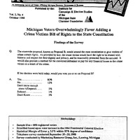 Institute for Campaign & Elections Studies of the Michigan State Chamber Foundation. “Michigan Voters Overwhelmingly Favor Adding a Crime Victims Bill of Rights to the State Constitution.” September/October 1988. Van Regenmorter Office Papers, Box 3, Folder 3, Archives of Michigan, Lansing, MI.