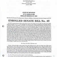 - "Enrolled Senate Bill No. 40", June 1994, 1993 SB 40 & 41 House Action & Enrolled, Box 118, Bruce Timmons Papers, MS 2013-17, Archives of Michigan, Lansing, Michigan
