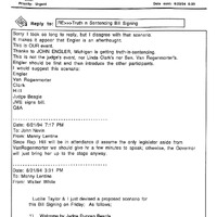 - Walter White to Manny Lentine and John Levin, "RE>>>Truth n Sentencing Bill Signing", Remarks: Press Conference on Crime Victims with Linda Clark; cost containment bill signing; Knights of Columbus Right to Life benefit, May 2, 1994 (File), Box 121, John Engler Papers, Bentley Historical Library, University of Michigan