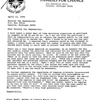 - Alana Hoeft to William Van Regenmorter, April 11, 1994, Folder: 1993-94 SB 40-41 Truth-In-Sentencing, Box 118, MS 2013-17, Archives of Michigan, Lansing, Michigan