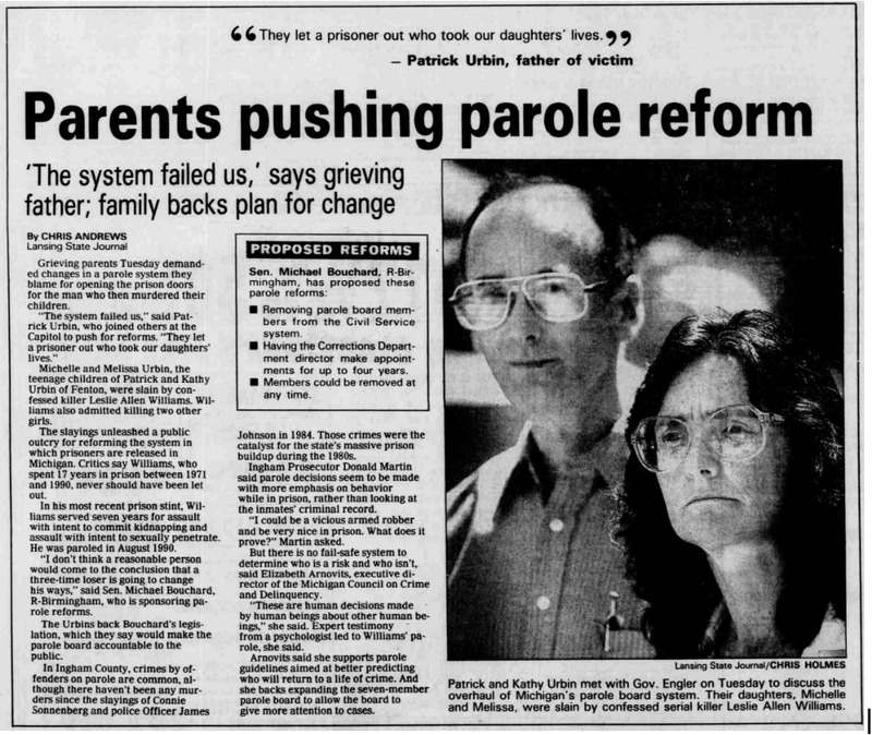Lansing State Journal - "Parents pushing parole reform" (1992)